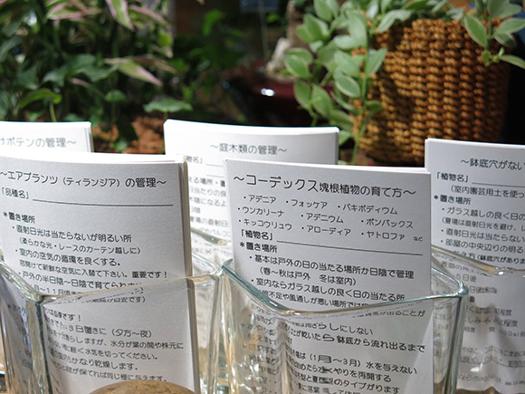 植物を購入した方に、オリジナルの「育て方カード」をお渡しています。