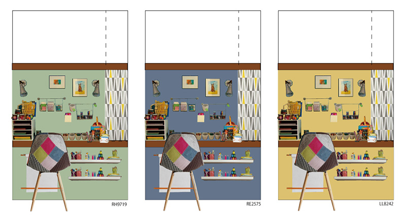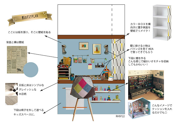 キッズデスク&プレイスペースの提案時に、シミュレーションしたカラー案。
