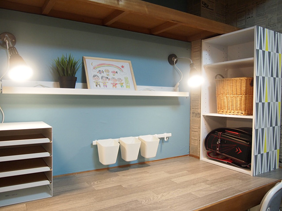 キッズデスク&プレイスペースは、メインの壁紙のブルーを中心に、