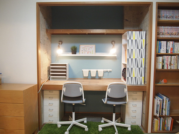 森山さん2人のお子様がこうやって並んでキッズデスク&プレイスペースを使うのも、一時的なもの。成長したら、自ずと子ども部屋に独立するはずです。不要になったら、親御さんのワークスペースにしてもいいですし、元通り収納スペースに戻してもいいと思います。お子様の成長に合わせた一時的なスペースづくりには簡単なDIYが役立ちます。