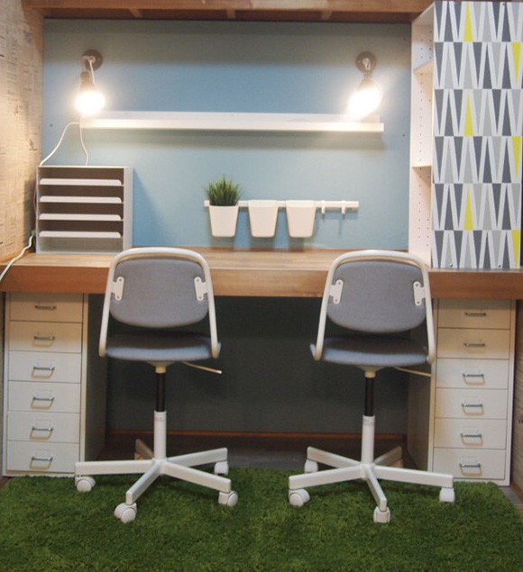 2人用スペースということもあり、椅子、デスク下の引き出しはお揃いで構成。