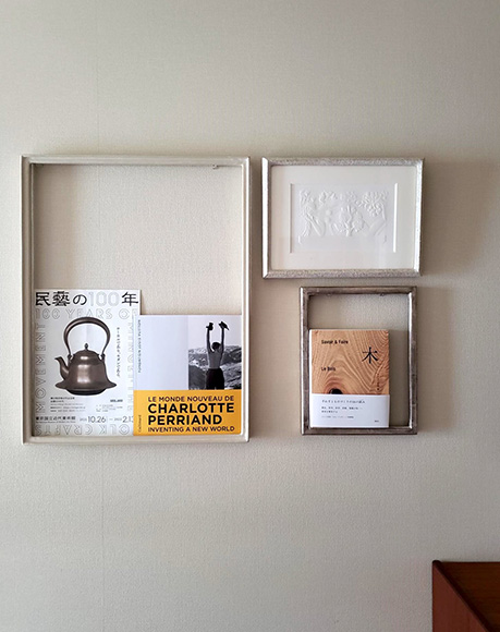 林友子さん作の額に、手元に置いておきたい本や美しい本を飾っています。