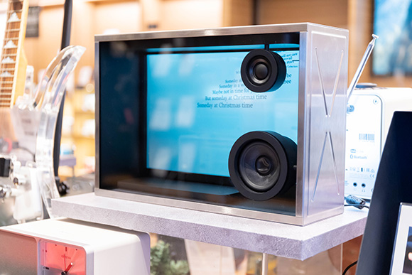 歌詞を自動的にモーショングラフィックスで表示する次世代型Wi-Fiスピーカー。