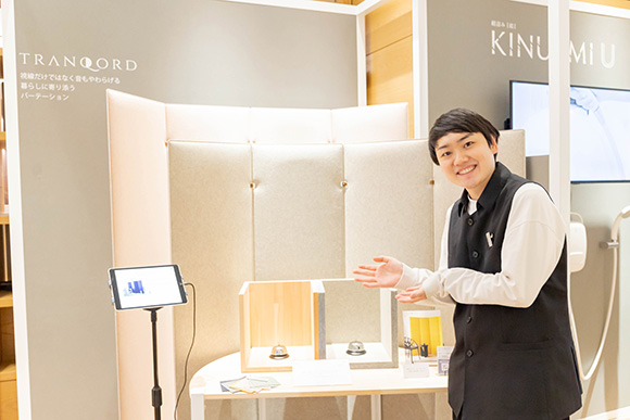 HOUSING & RENOVATION 堀さんショールームでは、デザイン性の高い洗面器、最新テクノロジーを備えた機器、自分らしくアレンジできる壁紙や床材など、暮らしを楽しく、快適にするプロダクトを展示しています。いま注目なのは、吸音パーテーションTRANQORDです。ご自宅でリモートワークスペースを区切ってパーソナルコーナーを設けたり、子ども部屋を仕切ったりするなど、さまざまな使い方が考えられます。