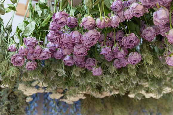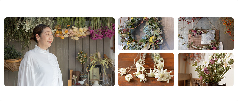 ナチュラルドライフラワー作家 吉本博美さんが手がけるドライフラワーは、乾燥剤や薬剤などを使わず、ゆっくりと自然乾燥させて、生花の姿と色合いを保つもの。生花の美しい瞬間が、ぎゅっと濃縮された姿に魅了されます。その作り方や飾り方を、マンション居住者の方に向けて教えていただきました。