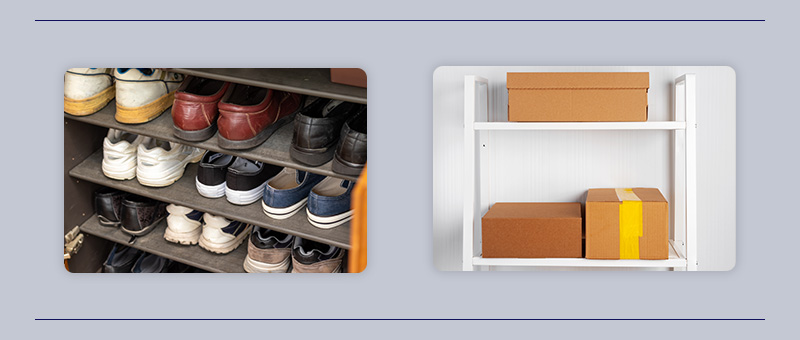 シューズインクローゼット内には、可動式の棚が付いていることが多く、靴の見える収納にはぴったり。