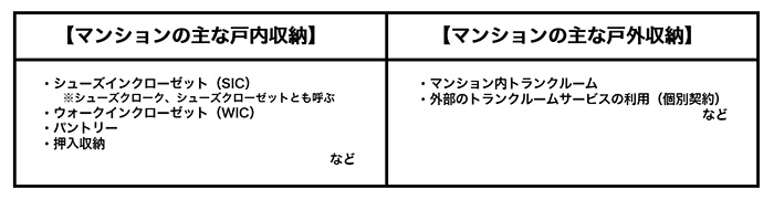 ——最近の新築マンションの収納スペースを、上記の表に分類してみました。収納スペースによって、どのように物を収めたらいいのか、注意点などありますか?