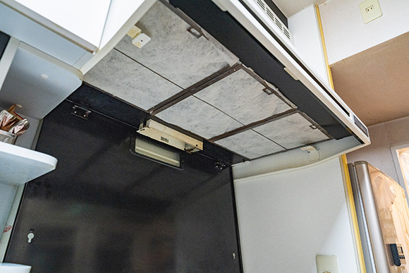 換気扇カバーを外すとフィルターにツララのように油汚れがついていました。