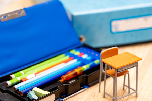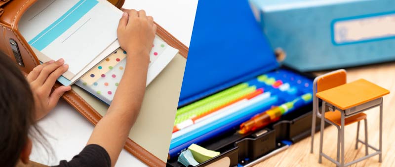 授業で使う、お道具箱や学校の机の中。意外と混沌としているみたいです。