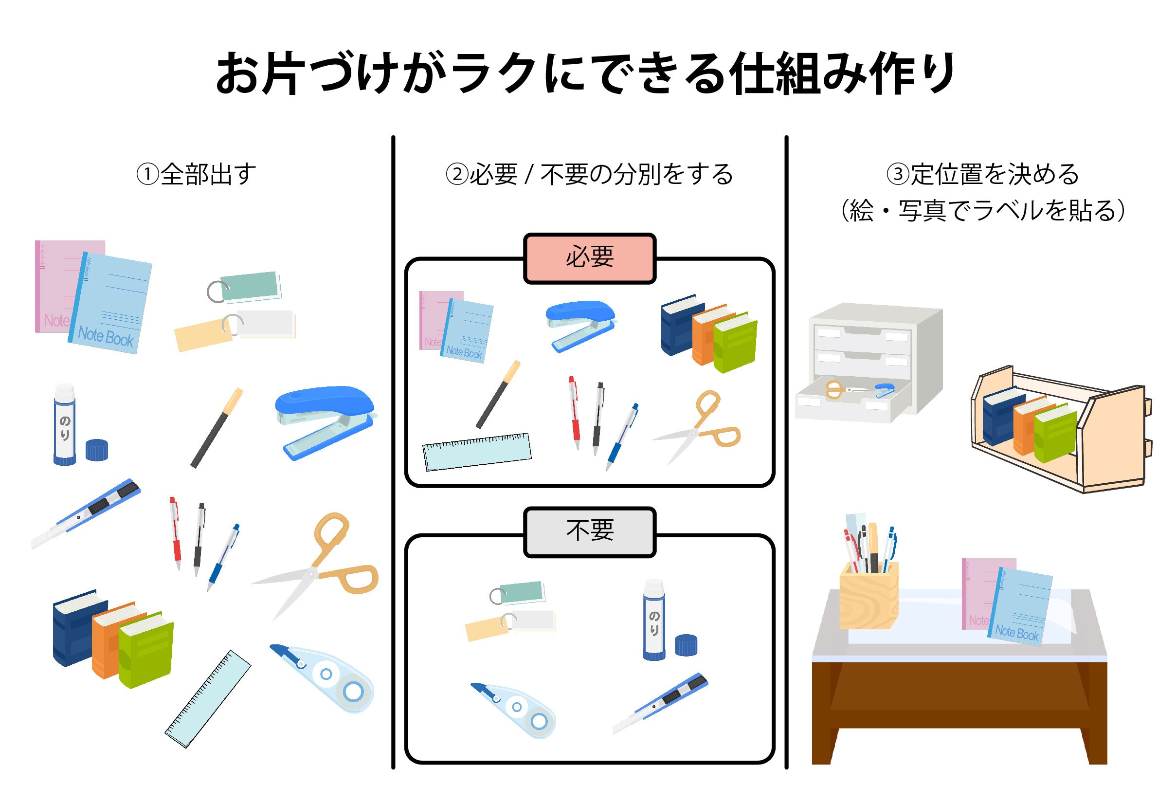 子ども達に伝えている、お片づけがラクにできる仕組み作りの正しい手順。