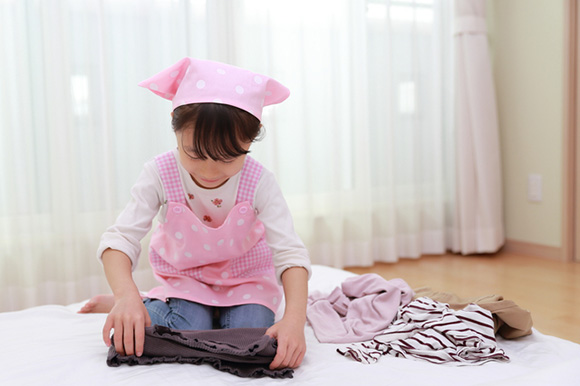 野中さんおうちでお子さんと一緒に、洗濯物を畳んだりお片づけをしたりする時にも、「こうやるのよ」と、オノマトペ入りで見本を見せてあげながら畳んでみてください。なぜかオノマトペを口にしていると大人まで楽しくなってきちゃうんですよね。楽しいとやりたくなるし、続けられます。実はこうやって一緒に楽しくやってくれるのも、小学4年生位までがリミット。これ以上大きくなると、反抗期も始まり、お友達やゲームに関心が移り、一緒にやってくれなくなってしまうのです(笑)。将来、自分で出来るようになるためにも、ぜひ一緒にできるこのかけがえのない時間、生活の土台となる家事を自然に楽しみながらやってみてくださいね。