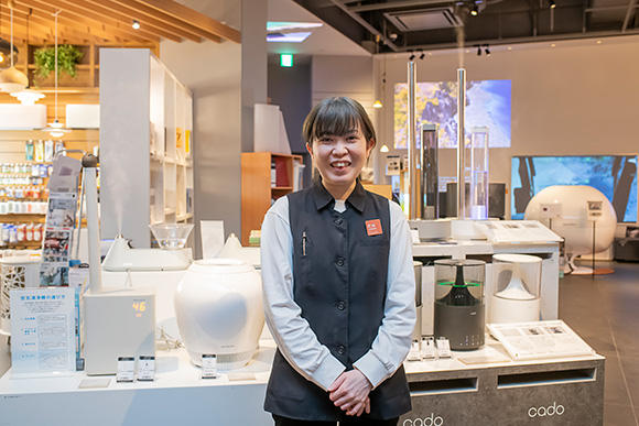 吉田さん「cado(カドー)」は、空気清浄機、サーキュレーター、ふとん乾燥機など、空気に関連した家電を手がけている日本のメーカーです。空気清浄機「LEAF」シリーズは、車載のポータブルタイプから、〜17畳・〜21畳・〜26畳・〜65畳まで対応できるタイプがあります。