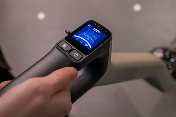 本体の液晶ディスプレイで操作。自走式なので、手で軽く支えるだけで前に進みます。