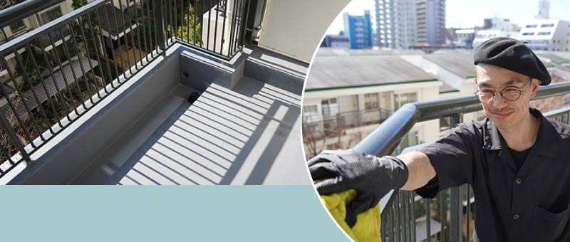 洗濯物を干したり景色を楽しんだりするマンションのバルコニー。いつもきれいにしておきたいものですが、お掃除は疎かにしがちなもの。今回は、ハウスクリーニングの専門家キレイデザインの齋藤 順さんに、実際にバルコニー掃除を実演して、水なし/水ありお掃除のポイントを解説していただきました。マンションのバルコニー掃除の場合に欠かせない、事前確認のポイントについても教えていただきました。