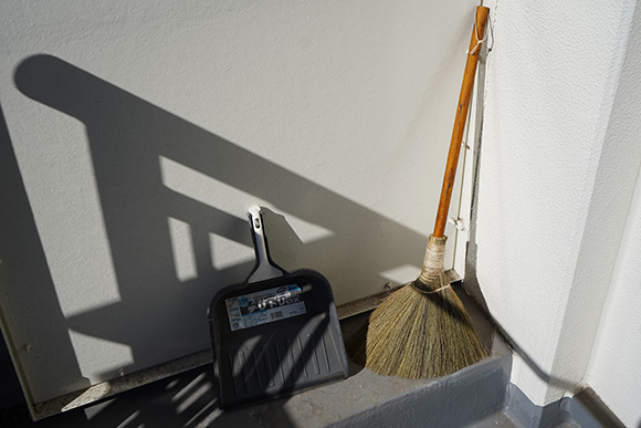 ベランダの掃き掃除は、家庭にあるほうきとちりとりでOKです。