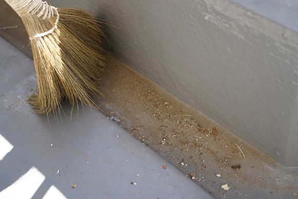 砂ぼこりは、乾燥しているうちにほうきで掃いて取り除きます。