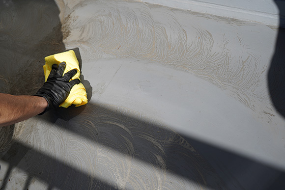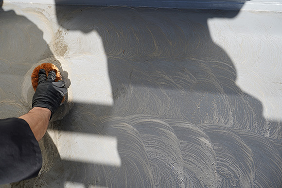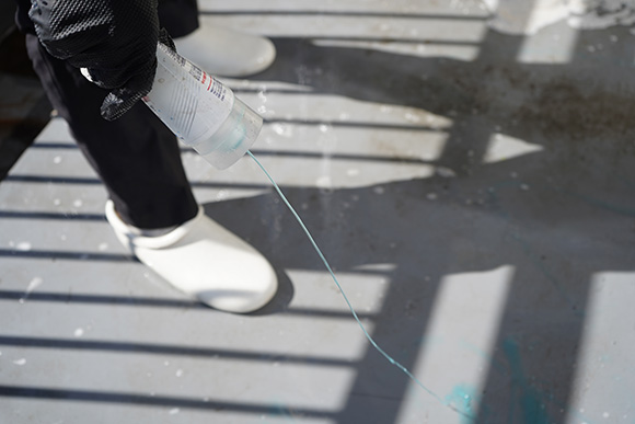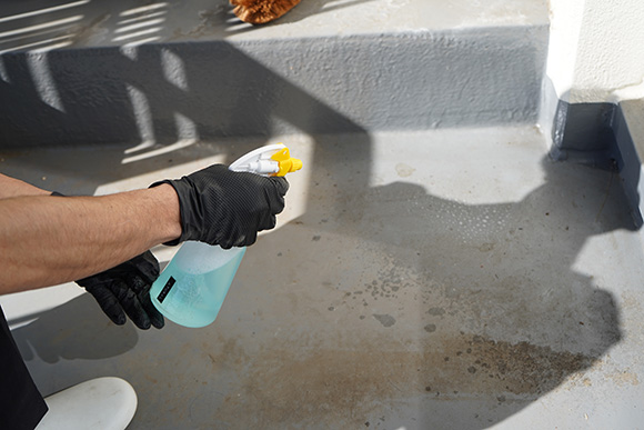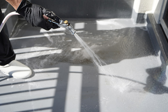 バルコニー掃除に水を使ってもいいのかどうか、バルコニーに防水加工が施されているかどうかの確認を行う