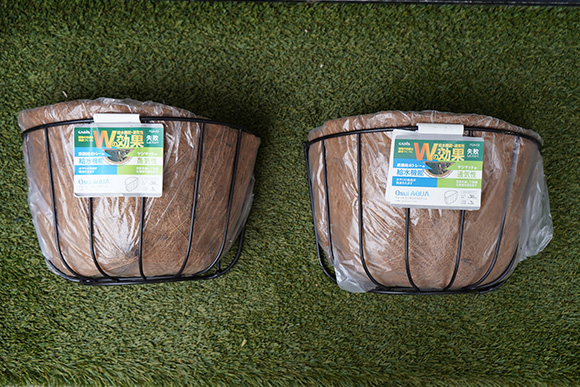 「ウォールハンギングバスケット」を使います。これは土が約3L入るサイズ。