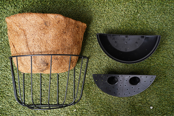 「ウォールハンギングバスケット」には、底面吸水トレーが付いています。