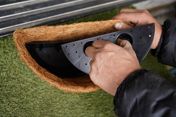 「ウォールハンギングバスケット」の底面吸水トレーを