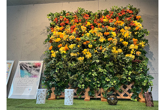 アーティフィシャルフラワーを使ったウォールは、現在川崎市幸区役所に飾られており、