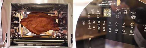 大容量サイズなのでなんとロティサリーチキン(丸鶏)も出来てしまう!(写真左)