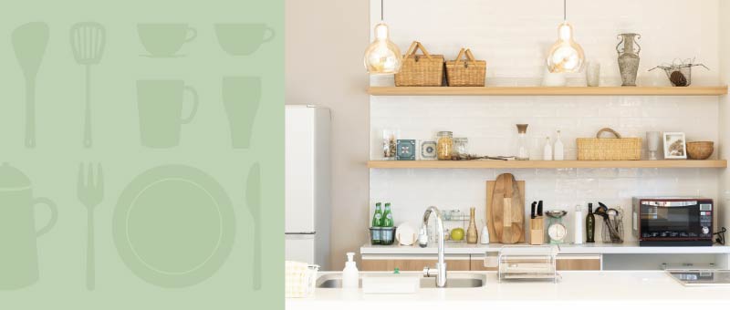 また吊り戸棚がないキッチンには、背面に収納棚を置くスペースが設けられていることが多いようです。背面収納の活用も一緒に考えておくと、使いやすいご機嫌なキッチンになるはずです。