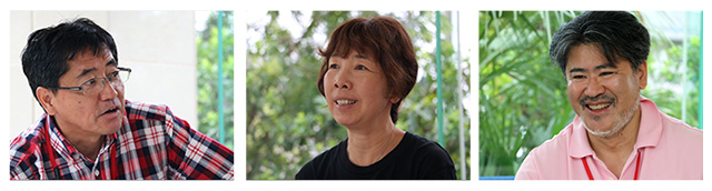 (写真左から)アイランズマルシェを運営するイベント実行委員会の鈴木さんと林さん、理事長の仲原さん。