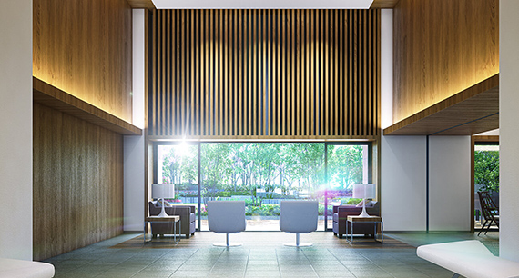コンシェルジュが常駐、コミュニティ・ラウンジなどの充実した共用部分
