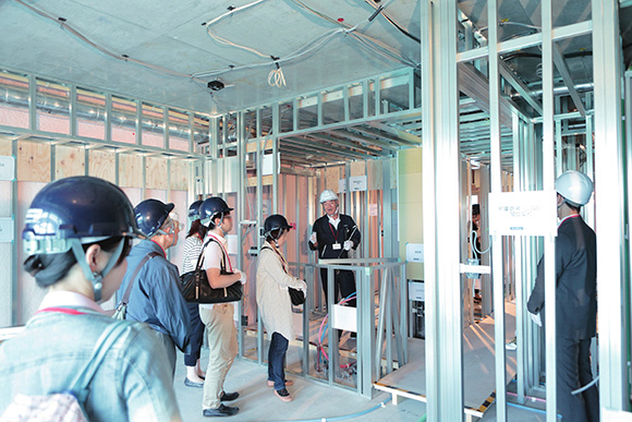 Brilliaのマンションオーナー様だけが体験できる「建築現場見学会」の様子。