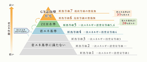 「GX志向型住宅」の場合は、省エネ基準より35%の省エネが実現しています。