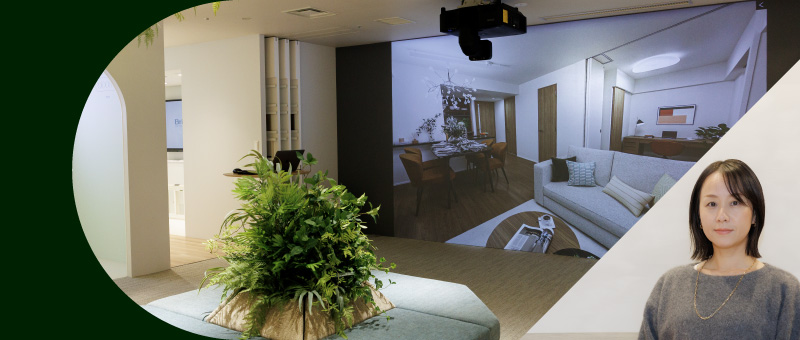東京建物 稲富さん 今回リニューアルの最大の目玉は、「Immersive Magic Wall」を導入したVRモデルルームです。これまではカラーセレクトで選んだ建材の実際の色味とVR上での色が異なり、お客様のイメージとの間に齟齬が生じる場合もありました。今回の最新技術の導入により、室内空間の色や素材感をよりリアルにイメージしていただくことが可能となりました。また、間取りや眺望、エントランスなどの共用部についても、没入感のある体験をしていただけます。