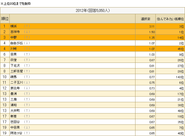 住んでみたい街トップは5年連続「吉祥寺」、2位「自由が丘」、3位「横浜」