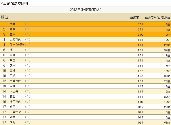 「実際に住んでみて良かった街」は「西宮」「神戸」「豊中」がトップ3