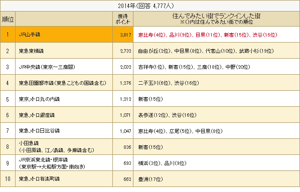 住んでみたい街(首都圏)獲得ポイント