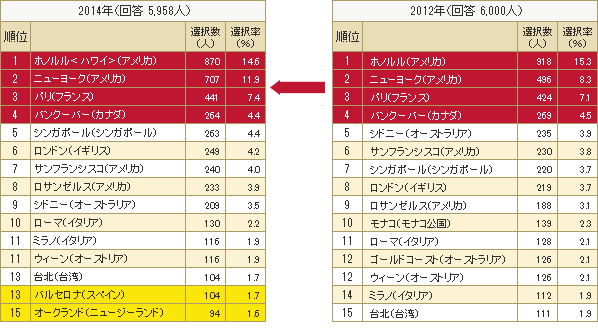 2位は「ニューヨーク」、3位は「パリ」、4位は「バンクーバー」の順