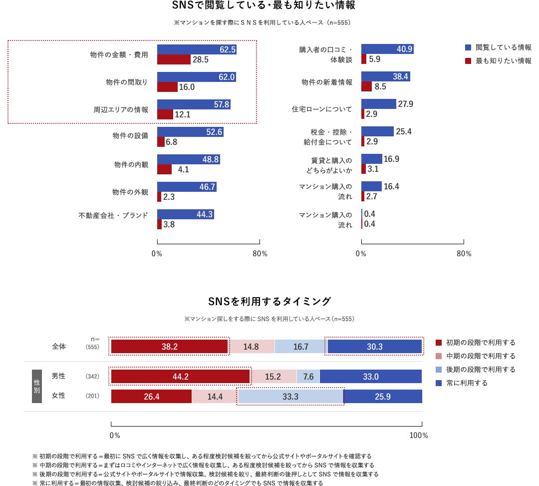 SNSの利用タイミングは、マンション探しの「初期段階」「常に利用」が多い