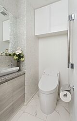 洗面化粧台のカウンターには美しく、高級感あふれる天然石を採用しました。