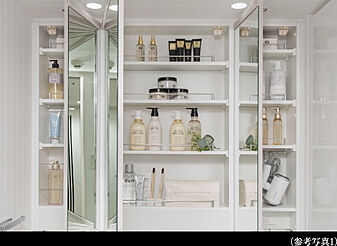 洗面化粧台のキャビネットの下部を有効利用し、体重計の収納に便利なヘルスメータースペースを設けています。※ヘルスメーターのサイズによっては収納できないものもあります。