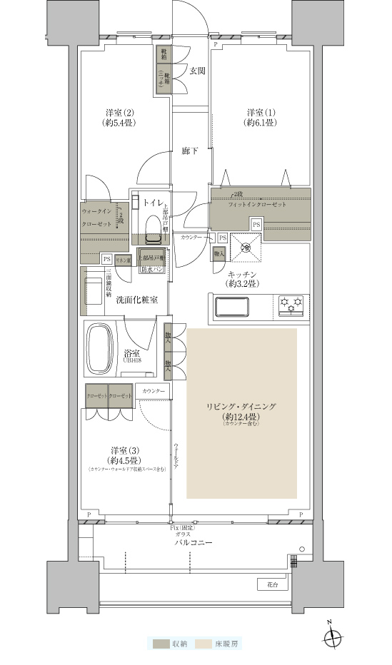 ■「南向き×ワイドスパン」で LDと洋室2部屋が 明るい空間に