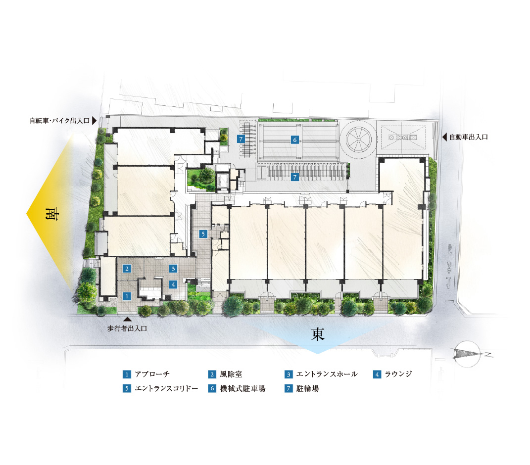 - 「70m2超中心」×「水辺・緑の潤い」がもたらすゆとりあるレジデンス