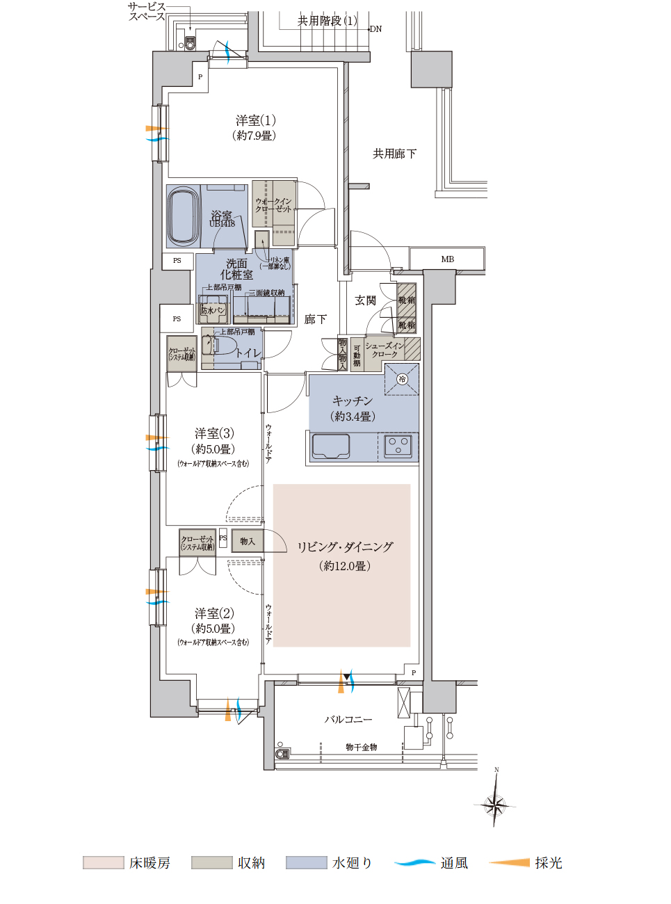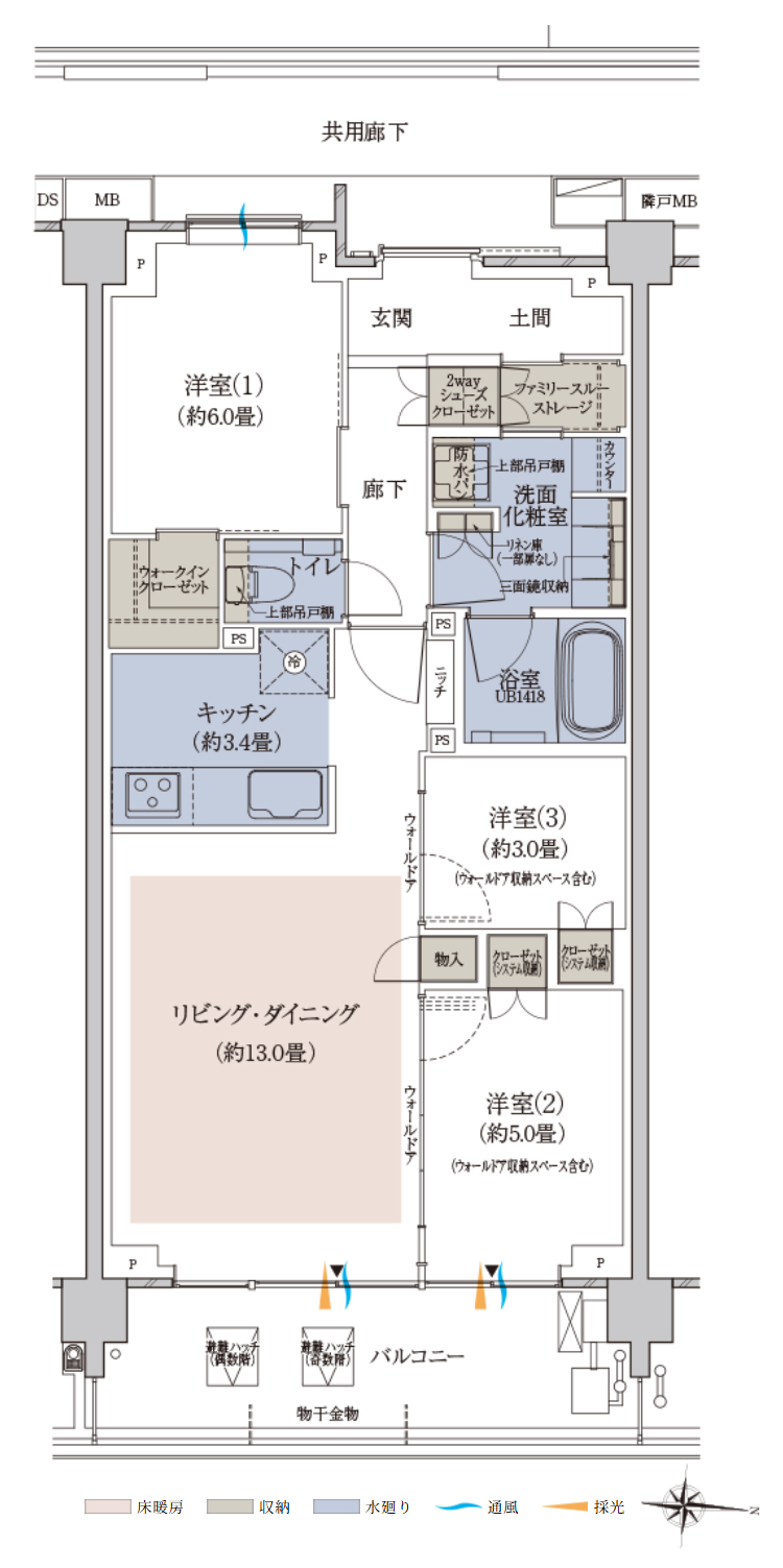 | 備考 | ■靴以外の収納にも便利なシューズインクロークを設置。 ■洋室(2)(3)のウォールドアを開放して広々としたLDとしても利用可。 ■洋室(1)はゆったり約7.9畳、全居室約5畳以上の広さを確保。 |