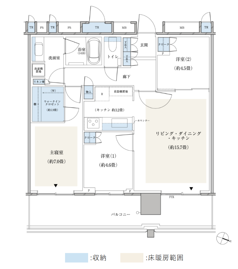 ※専有面積にトランクルーム面積/1.70㎡含む |