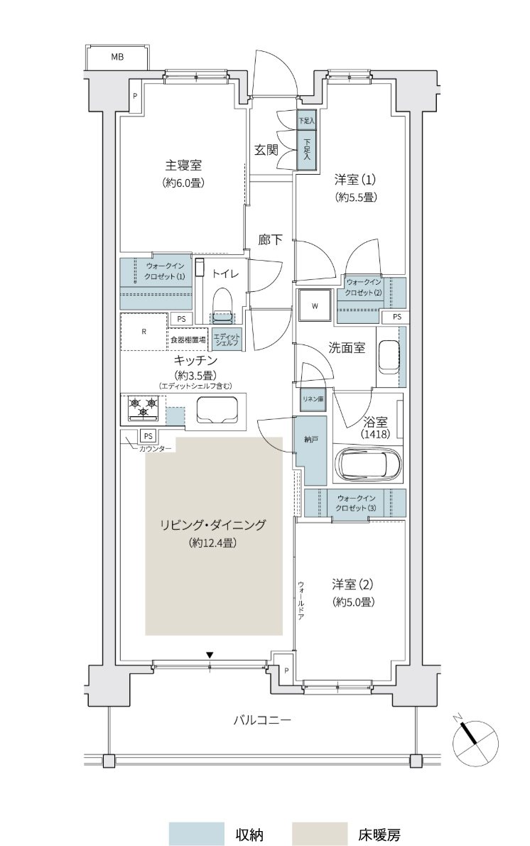 備考 | ■3つのウォークインクロゼットや納戸など豊富な収納 ■ウォールドアを開放すれば約17.4畳のリビングダイニングとして利用可能 ※住戸により仕様・形状が異なる場合がございます。 |