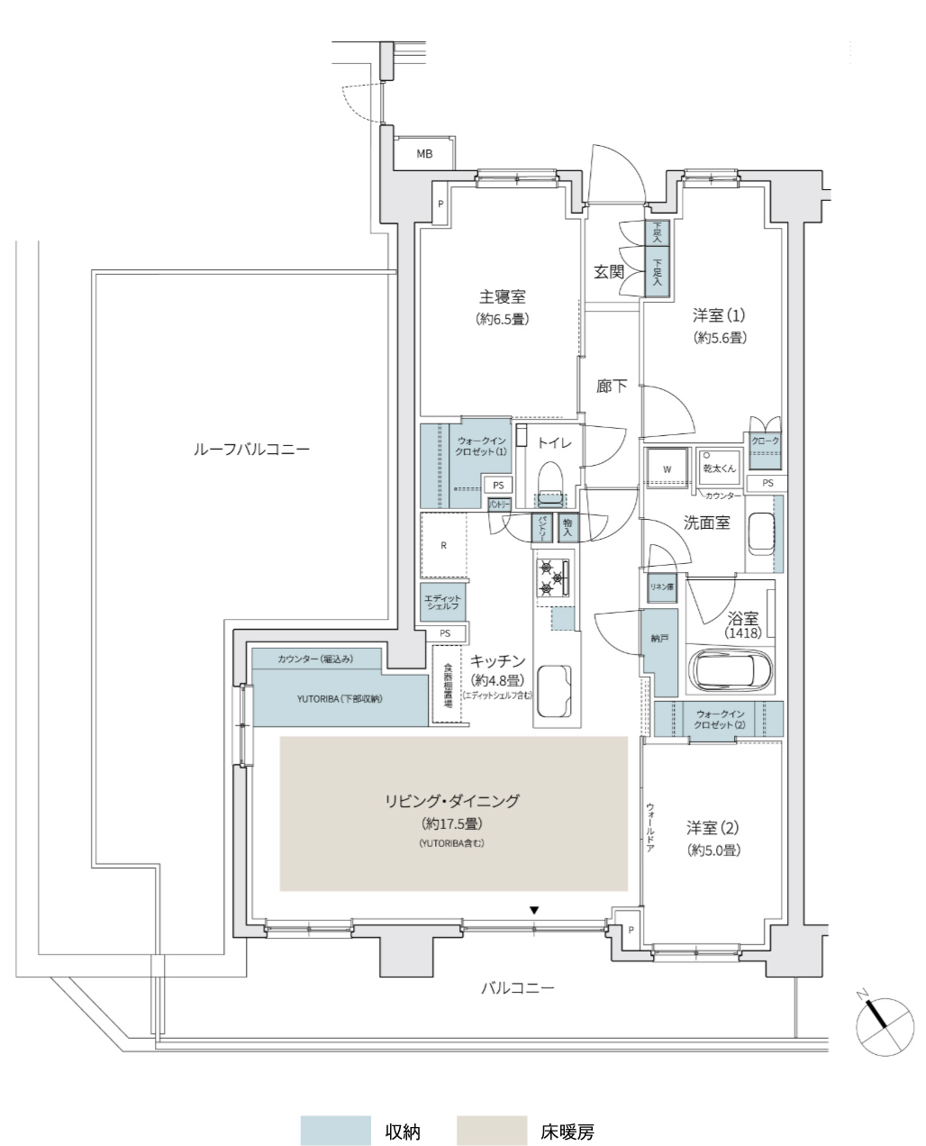 備考 | ■ルーフバルコニー付きの角住戸 ■ウォールドアを開放すれば約22.5畳の広いリビングダイニングとして利用可能 ※住戸により仕様・形状が異なる場合がございます。 |