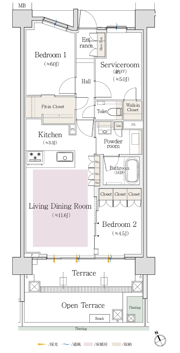 | その他面積 | テラス面積/11.61㎡、オープンテラス面積/8.17㎡ サービススペース面積/4.31㎡ |