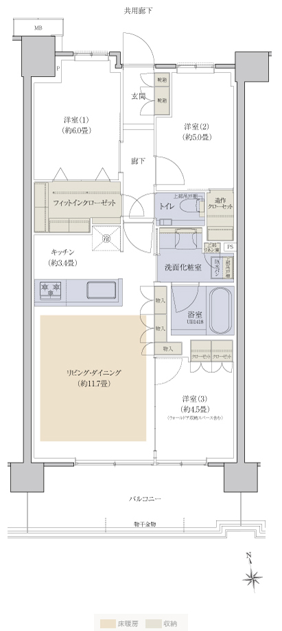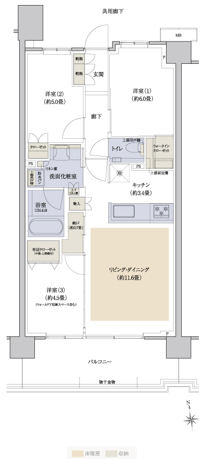 その他面積 | バルコニー面積/11.50㎡ (3・5階)、11.60㎡ (6~8階) |