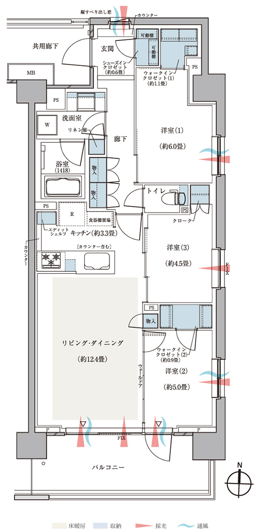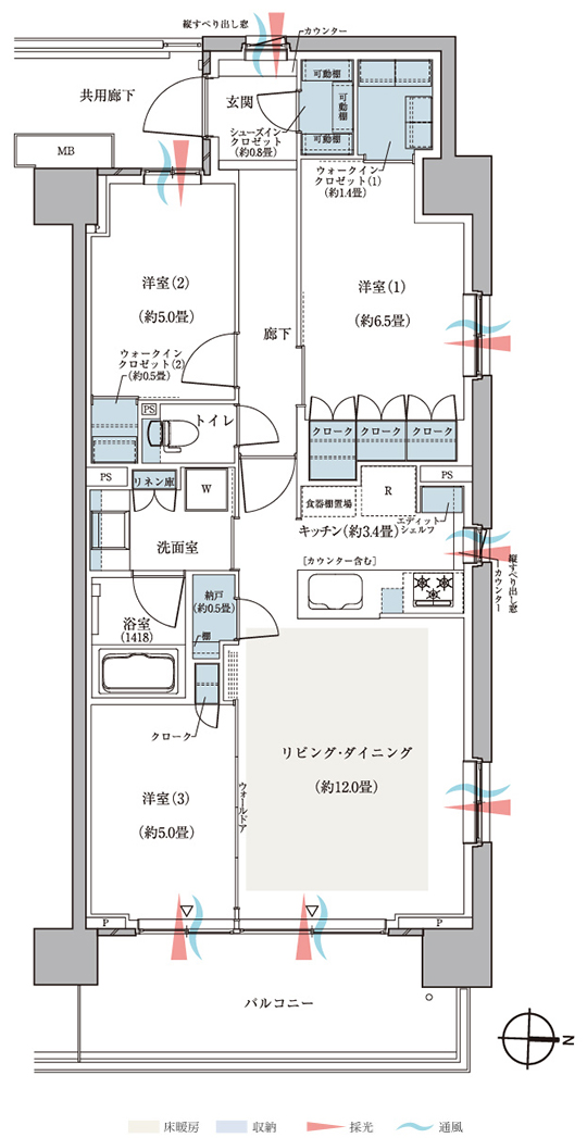 備考 | 【C棟】 ●シューズインクロゼットは、ベビーカーやアウトドア用品等の収納も可能 ●3つのウォークインクロゼット。主寝室はWICと納戸のダブル収納 ●ウォールドアを開放すれば、18畳超のリビング・ダイニングとして利用が可能 |