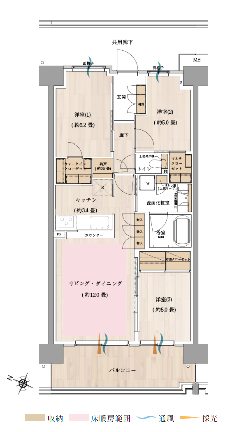 その他面積 | バルコニー面積/12.40㎡(2~7階)、12.50㎡(8~10階) |