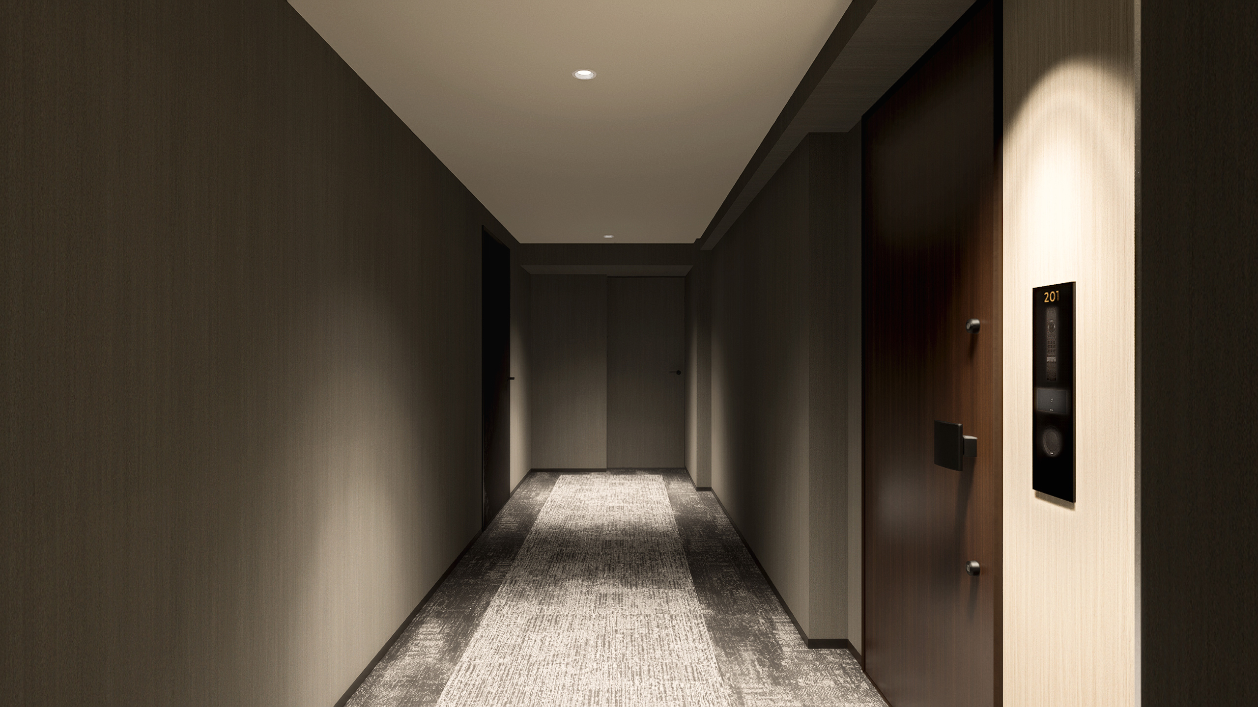 - 全邸角住戸で1フロア3邸の高いプライバシー性、エントランス+各住戸玄関ドアには顔認証システムを採用。